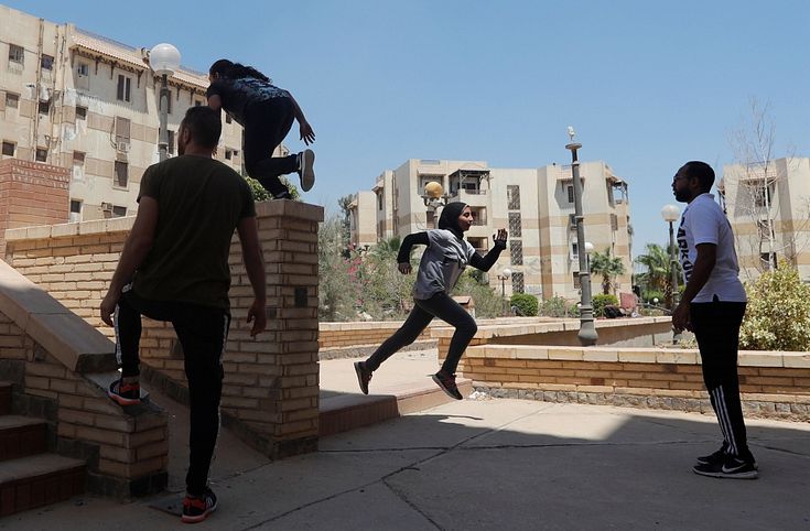 Reizi nedēļā pamestā parkā Kairas piepilsētā pulcējas sieviešu grupa, kas ar ielu...