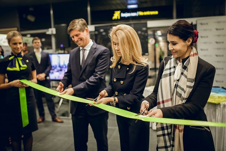airBaltic vecākais viceprezidents lidojumu vadības jautājumos Pauls Cālītis, starptautiskās lidostas “Rīga” valdes priekšsēdētāja Ilona Līce un Apvienoto Arābu Emirātu vēstniece Latvijā V.E. Hanana Al Alīli