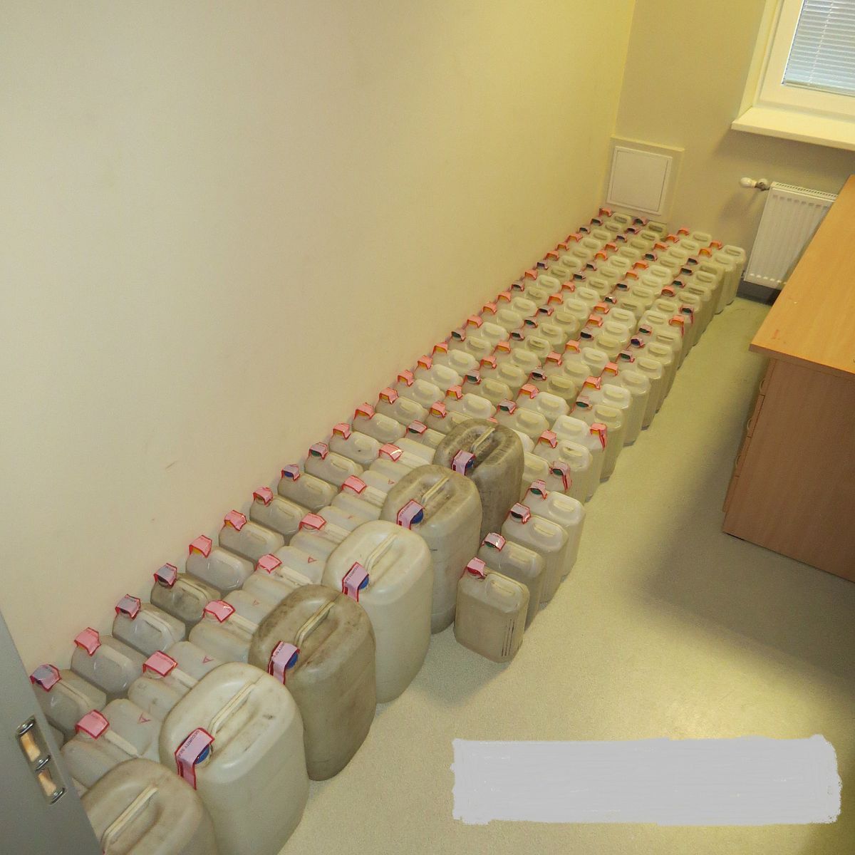 Šonedēļ – otrdien, 14. oktobrī, Valsts policijas Kurzemes reģiona pārvaldes Kriminālpolicijas biroja Organizētās noziedzības un noziegumu ekonomikas jomā apkarošanas nodaļas darbinieki sankcionētas kratīšanas laikā Liepājā, kādā īpašumā Robežu ielā, izņēma 630 litrus šķidruma, kas, iespējams, ir nelegālais alkohols.