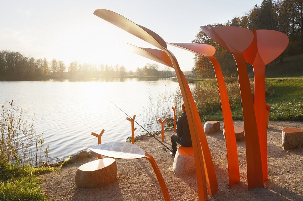 Makšķernieku soli Alūksnē ir interpretācija par ezeru piekrastēs sastopamo ūdensaugu Purva cūkausi (Calla palustris). Zem platajām lapām iespējams rast aizsegu no saules un lietus ūdeņiem, bet uz zemākajām lapām ir integrēta informācija par ezera zivīm un teikas par Alūksni.