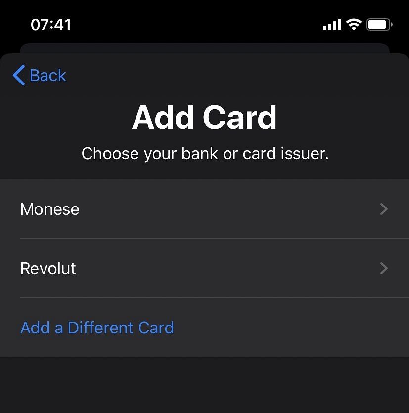 Tiesa, izvēloties šo norēķinu iespēju, redzams, ka pašlaik Apple pay pieejams tikai Monese un Revolut karšu īpašniekiem (skatīt galerijā).