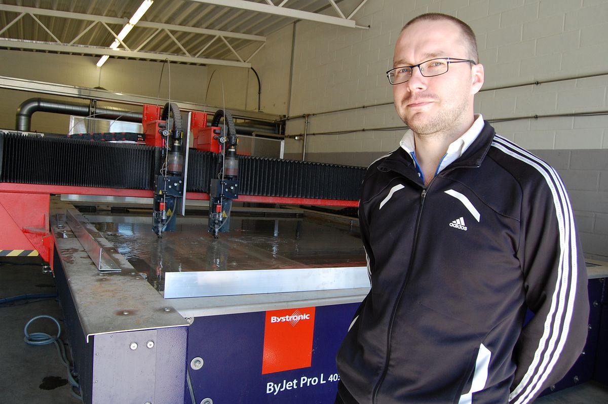 «Ūdensgriešanu sākotnēji izmantoja NASA kā kosmosa un aerobūves tehnoloģiju. Tagad to plaši lieto arī pārtikas ražošanā un citās jomās,» stāsta viens no SIA AB Metal īpašniekiem Arnis Balodis. Iekārtas princips ir balstīts uz augsta spiediena (400 bāru) ūdens strūklu, ko papildina smilšu strūkla. Tehnoloģija ļauj izgriezt detaļas no krāsainajiem un melnajiem metāliem, tostarp titāna, kā arī plastmasas, kompozītmateriāliem, akmens un gumijas. Īpaši būtiski ir tas, ka ūdensgriešana ļauj pieņemt pasūtījumus detaļu izgatavošanai projektos, kur nedrīkst materiālu apstrādāt termiski, skaidro A. Balodis. Lāzers griešanas procesā kaut nedaudz, tomēr ietekmē materiāla griezuma malu tehnoloģiskās īpašības. Savukārt ūdensgriešanas tehnoloģija garantē saglabāt materiālu bez izmaiņām. Projekts atbalstam iesniegts jau pērn martā, 2011. gada beigās sākta iekārtu montāža. Tagad var uzskatīt, ka testēšanas periods beidzies un iekārtas strādā ar paredzēto jaudu.