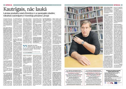 Par Emirātu un Latvijas tirdzniecības attiecībām esmu ļoti pārliecināts – tur viss ir ievirzīts pareizajā gultnē, un latviešu produkti Carrefour lielveikalu ķēdēs jau ir un būs vēl vairāk. Ir arī bērnu biezenītis Rūdolfs. (Smejas.) ]