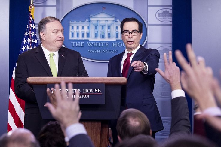 "Šo darbību rezultātā mēs nogriezīsim miljardiem dolāru Irānas režīma atbalstam," reportieriem pavēstīja Mnučins.