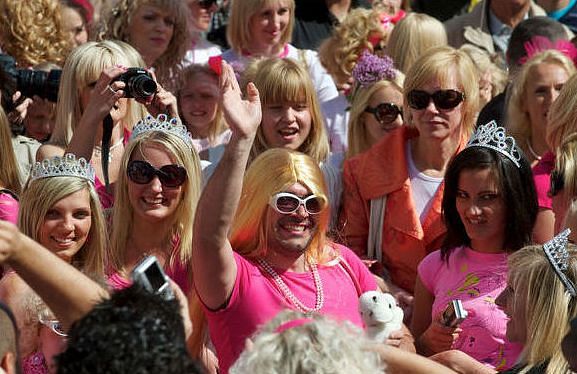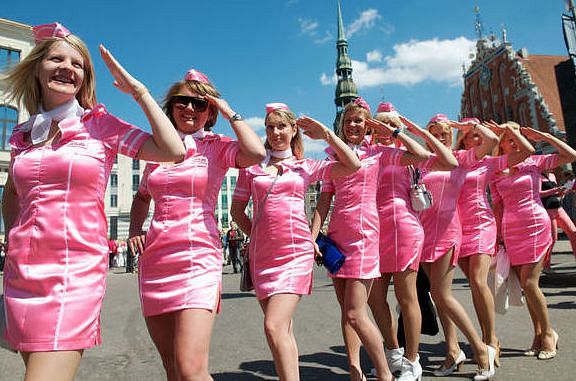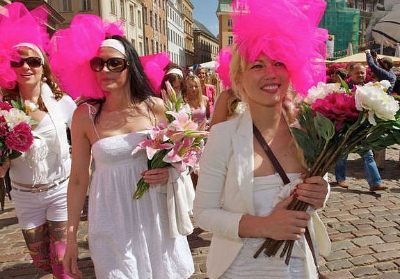 Medijs akcentē, ka lielākā daļa dalībnieču bija tērpušās rozā un valkāja augstpapēžu kurpes.