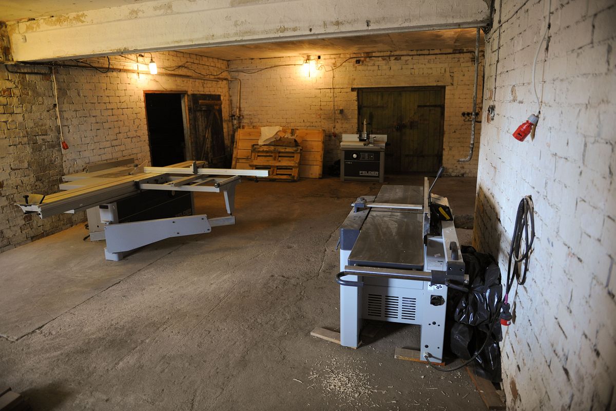 Tāpat ievilkta arī ugunsdzēsības signalizācija. «Vēl ir jāierīko darbinieku ģērbtuves, dušas telpas un tualetes,» uzņēmējs izrādījis bijušās fermas tualešu telpas. Kanalizācijas pievads esot saglabājies no kolhoza laikiem.