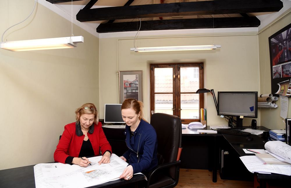Arhitektu biroja Birojs A līdzīpašniece Anita Pabrūkle stāsta, ka radošiem cilvēkiem, īpaši arhitektiem, strādāt Vecrīgā, turklāt vēl Arhitektu namā, ir īpaši ērti un izdevīgi.
