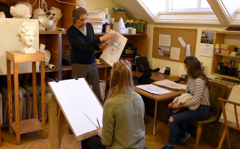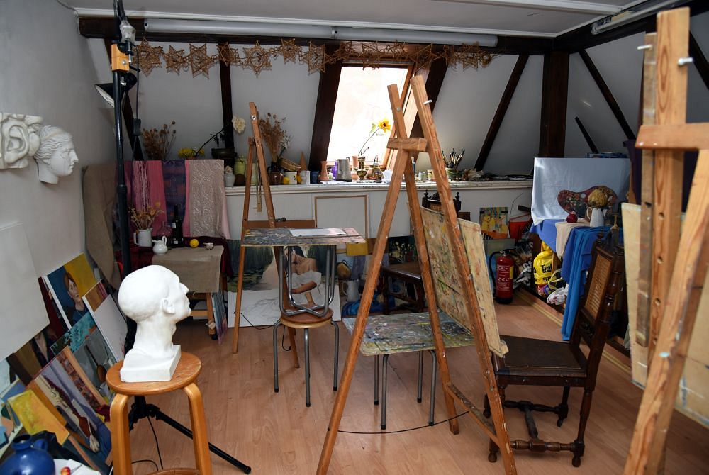 Zīmēšanas studijas telpas ir 45 m2 plašas, tās ir speciāli izbūvētas 1956. gada Arhitektu nama rekonstrukcijas laikā un atrodas ēkas mansardā.