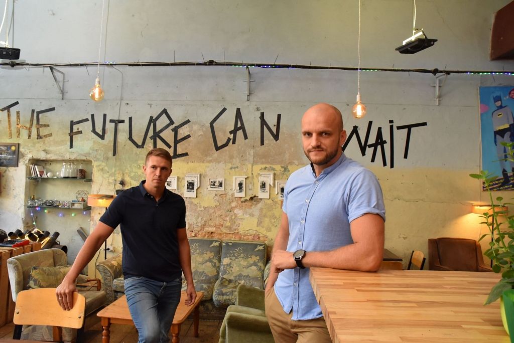 Zīmola Ezītis miglā izveidotāji Ronalds Undzēns (no kreisās) un Lauris Streņģe