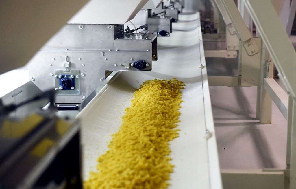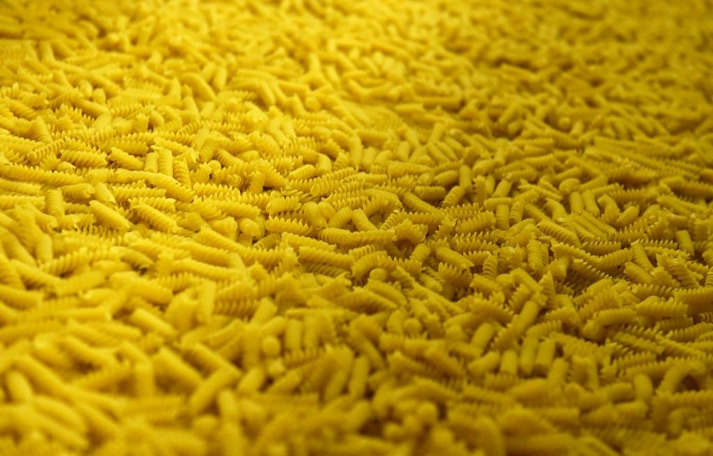 Jāmin, ka spageti tiek kaltēti un padoti pa slīdošām lentēm, kur ar naža palīdzību tiek apgriezti. Pārējās darbības - makaronu sijāšana, sapildīšana un fasēšana tiek veikta automātiski ar robotu palīdzību. Lai gan liela daļa darbu jau šobrīd ir automatizēti, nākotnē uzņēmums plāno to vēl paplašināt, jo novērojamas problēmas ar darbaspēka piesasisti.