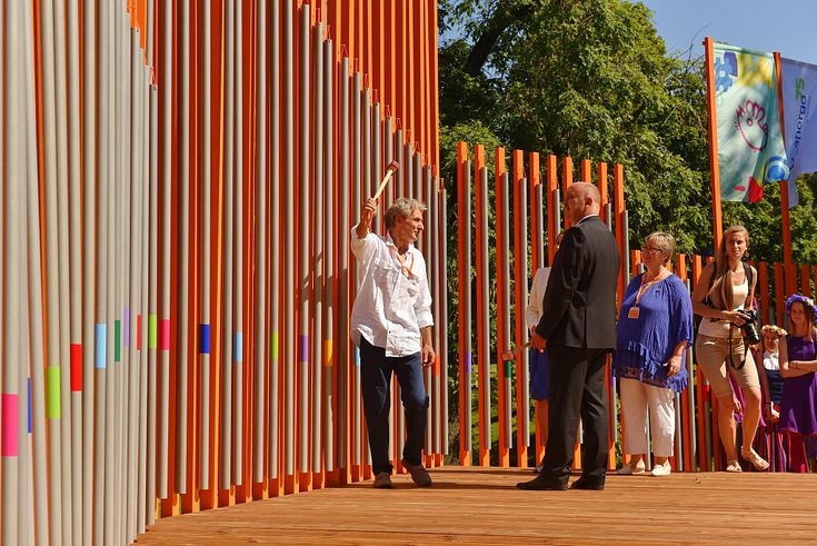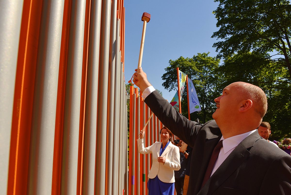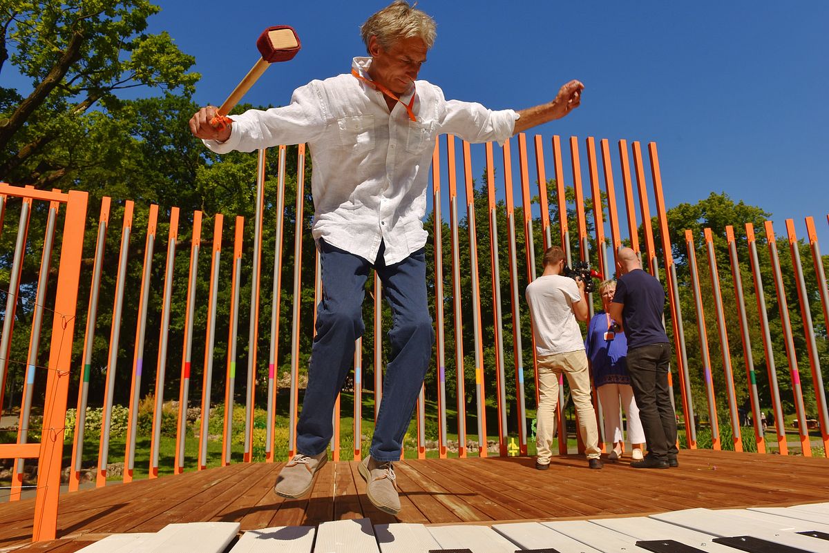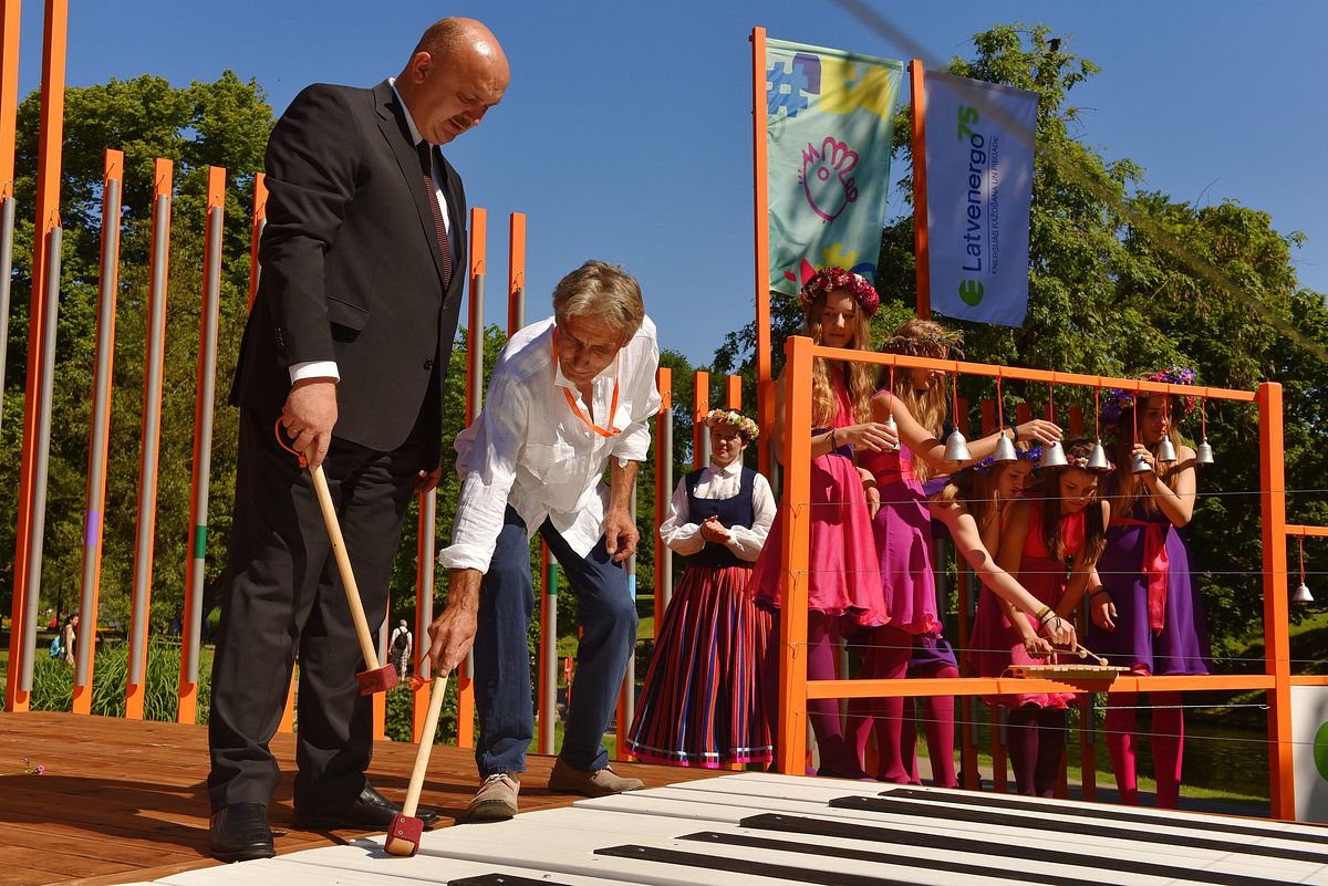 Interaktīvā objekta ideja ir apvienot dziesmu un kustību, ļaujot radoši izpausties jebkuram. Te nav nepieciešama nošu pārzināšana vai kāda īpaša sagatavošanās. Aicinām visus iemēģināt, ar savām kustībām ievibrēt, iekustināt, ieskandināt Enerģijas stabules, tā, lai veidojas tilts starp kustību – palēcienu, uzsitienu un skaņu – notīm, kuras izvilināt arī nezinātājam palīdzēs īpašs objekta krāsojums un pamācības, stāsta objekta autors, svētku galvenais mākslinieks Ivars Mailītis.