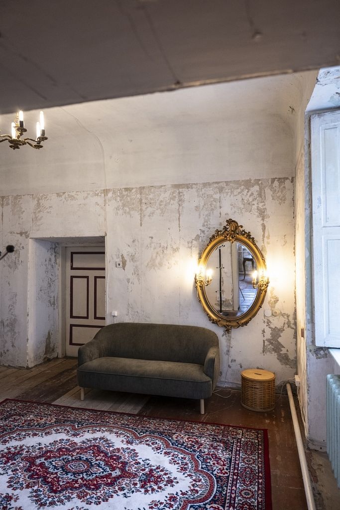 Jaunie ēkas saimnieki saprata, ka ir jābūt elastīgiem, un domāja, ar ko lai sāk, jo īpašumā nekas īsti nebija apdzīvojams un uzreiz izmantojams. “Protams, ka sākām ar teritoriju un domājām, kur tā mūsu naudiņa un laiks, kuru investējam, ļautu visefektīvāk gūt jebkādus ienākumus. Kaut vai desmit eiro par fotosesiju, pirmos ienākumus. Sapratām, ka mūsu saprašanai lielā māja pagaidām vēl ir par plašu, tāpēc sākām ar sētas apartamentu izveidi,” stāsta A.Tiknuse. Tika izveidoti divi apartamenti un piedāvāti īstermiņa īrei.