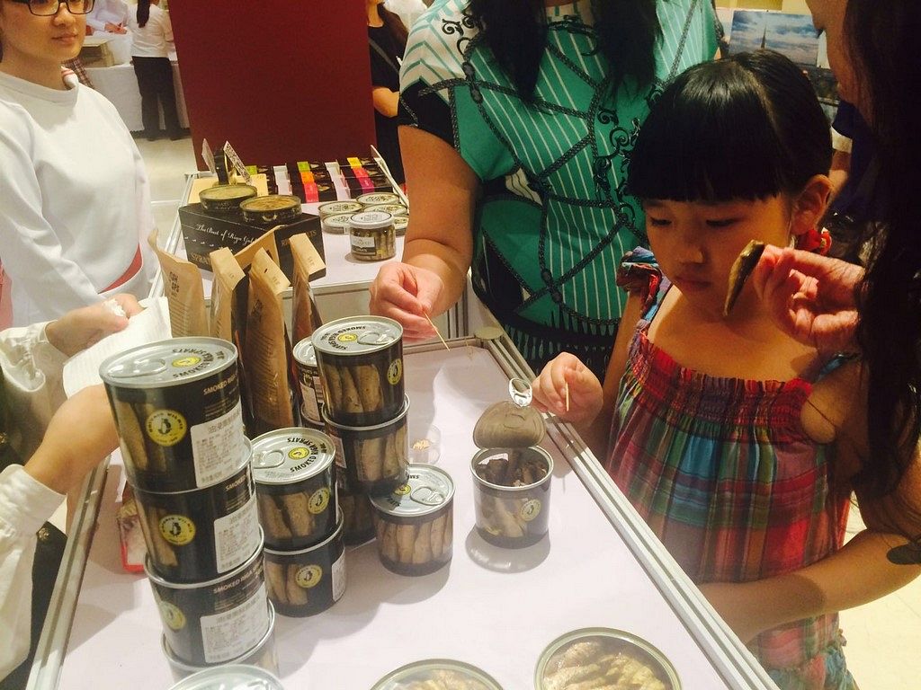 Ķīnieši ar neviltotu interesi baudīja mūsu valsts gastronomisko piedāvājumu. Īpaša rosība bija manāma pie šprotu stenda. Ja tagad kāds mēģinātu uzņemt youtube.com video, kā ķīnieši ēd Latvijas šprotes, tajā sašķobītu sejas grimašu būtu krietni mazāk nekā pirms pāris gadiem. Vismaz Pekinā noteikti. Latvijas dienu apmeklētāja Gon Šī ar interesi šprotes degustēja pirmo reizi un bija pārsteigta, atzīstot, ka garša esot labāka nekā aromāts. Viņas 10 gadus vecā meita Žang Hai Džī pirmo kumosu baudīja ar ne tik viennozīmīgu skatienu, tomēr vēlāk mazajai tās sāka iet tik ļoti pie sirds, ka prasīja vēl.