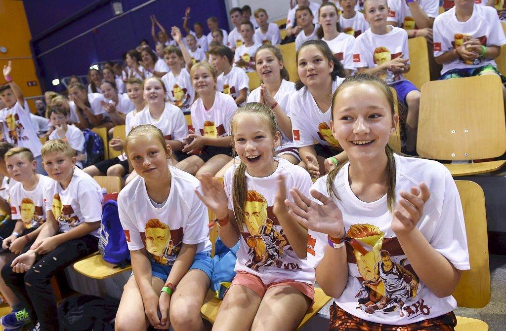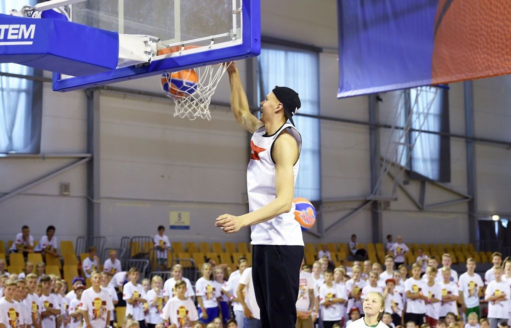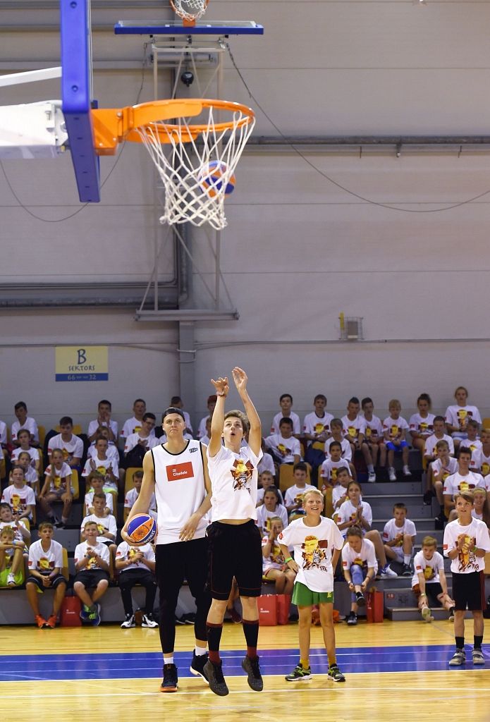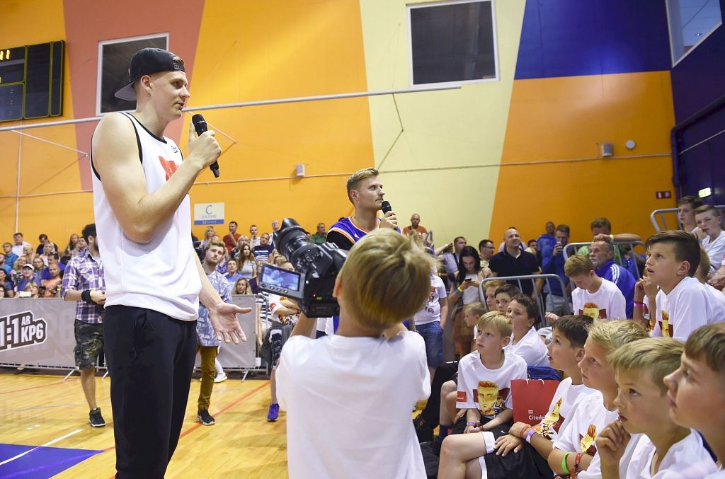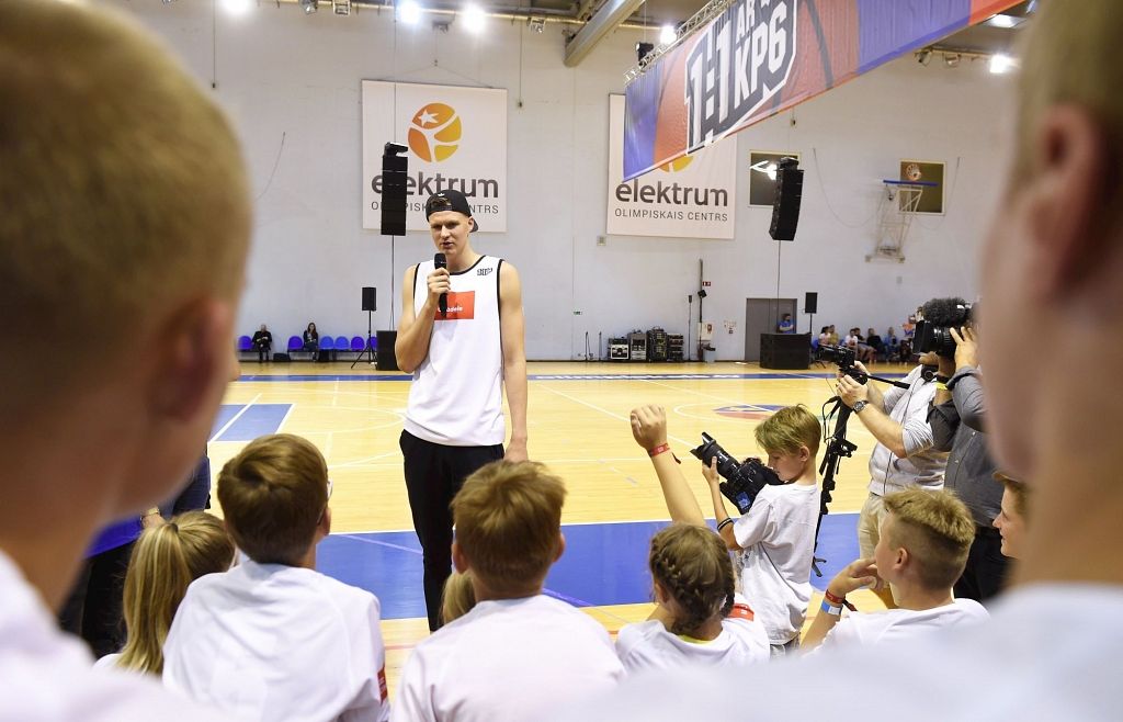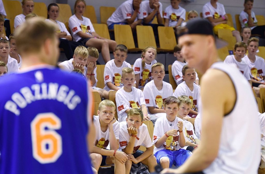 250 jaunajiem basketbolistiem no visas Latvijas šodien bija iespēja uzspēlēt basketbolu un nofotografēties ar slaveno basketbolistu Kristapu Porziņģi. Daudziem no viņiem tieši Porziņģis ir paraugs, kurš iedvesmo trenēties.