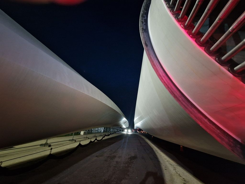 Paralēli turpinās pārējo vēja turbīnu spārnu nogāde no Ventspils ostas uz Laflora Energy vēja parku Kaigu purvā Jelgavas novadā.