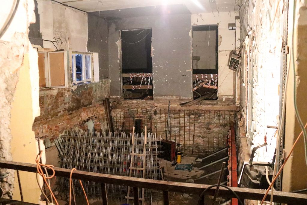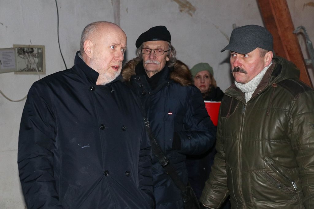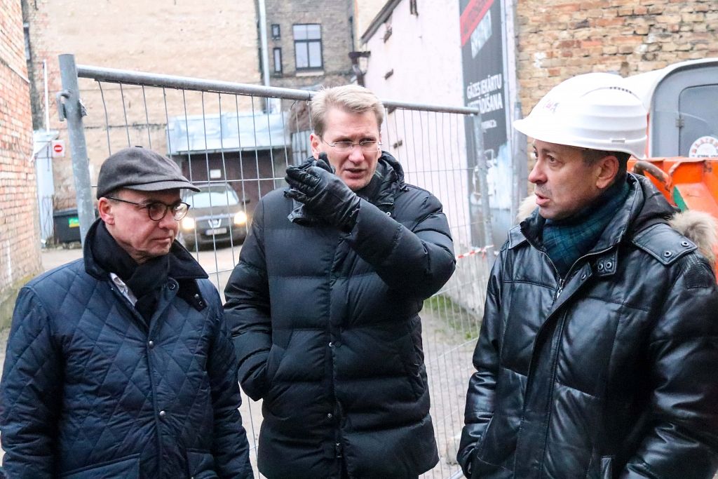Rīgas domes Pilsētas īpašuma komitejas priekšsēdētājs Oļegs Burovs kopā ar LMA rektoru Kristapu Zariņu, prorektoru Andri Vītoliņu un profesoru Alekseju Naumovu pirmdien apsekoja remontdarbu gaitu LMA topošajās telpas Avotu ielā 36a.