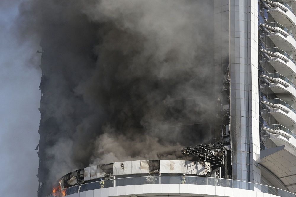 FOTO: Dubaijā nodzēsts ugunsgrēks vienā no pasaules augstākajiem debesskrāpjiem