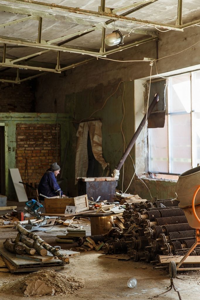 Bijušo ķiveru fabriku vietējie līgatnieši sauc par kasku cehu, jo tajā tika ražotas motociklistu ķiveres visai Padomju Savienībai. Pirms tam ēkā atradušies staļļi, skola, govju ferma. Aptuveni divdesmit gadus ēka bijusi pamesta, bet pagājušajā gadā 1500 kvadrātmetru lielo ēku Līgatnē iegādājās Inese un Marģers Zeitmaņi.