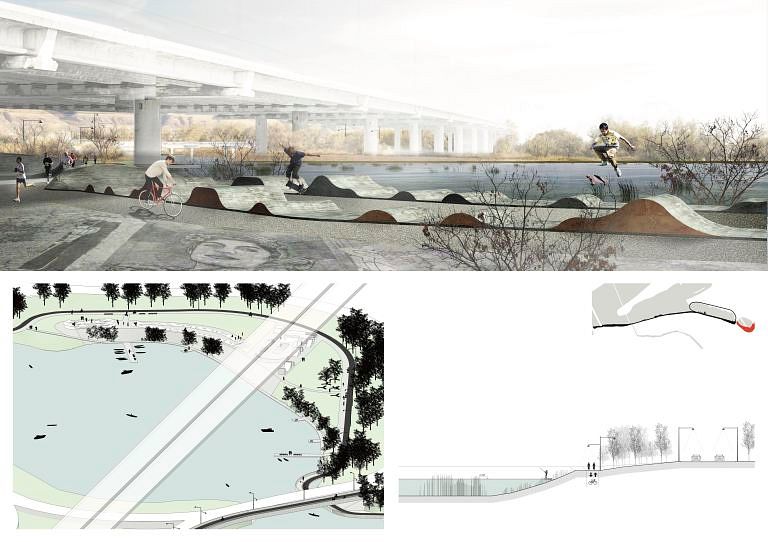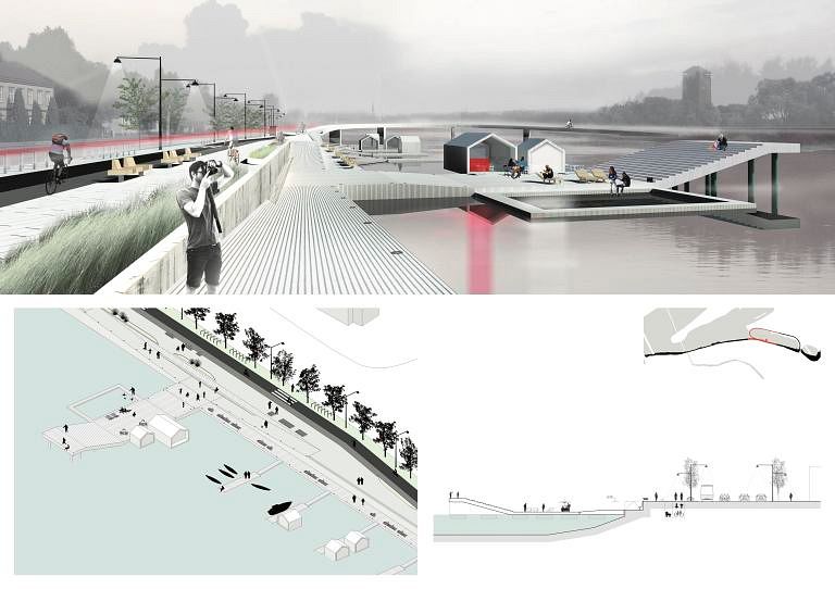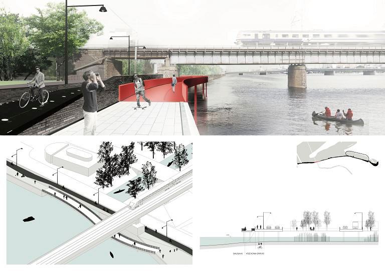 Tāpat bija jāparedz pārkārtot pašlaik esošās kuģīšu piestātņu vietas, lai nodrošinātu vairāklīmeņu piekļuvi Daugavai; atbilstoši teritorijas plānojumam jāveicina dažādu pagaidu būvju – restorānu un kafejnīcu uz peldošām platformām – ar estētiski augstvērtīgiem risinājumiem rašanās.