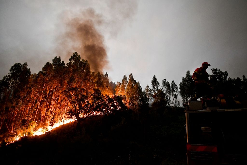 Ugunsgrēks izcēlās sestdienas pēcpusdienā Leirijas apriņķa Pidrogangrandi pašvaldībā un strauji izplatījās uz vairākām pusēm. Ar liesmām cīnās aptuveni 900 ugunsdzēsēji un iesaistītas 300 ugunsdzēsēju automašīnas. Vairākus ciematus liesmas pilnībā ielenkušas.