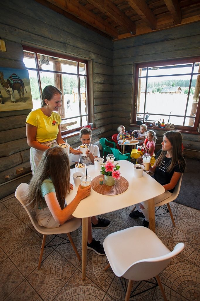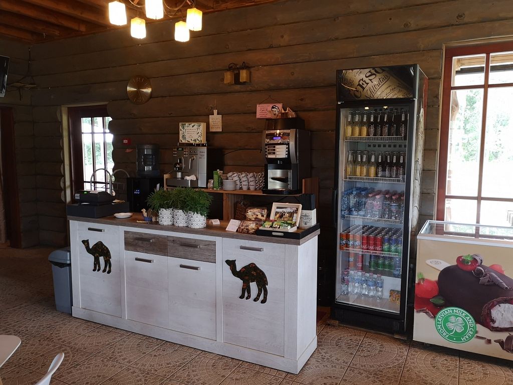 Kamieļu parkā «Rakši» darbojas kafejnīca «Camel Cafe», kurā pieejamas divu veidu kamieļu piena pankūkas, kuras tiek pasniegtas ar ievārījumu un sezonas augļiem, ogām vai pildītas ar sieru.