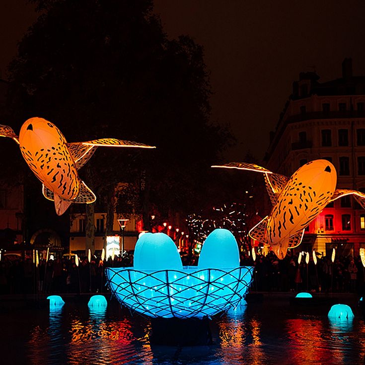 Kanālā pie Rīgas Brīvostas apskatāms lielformāta gaismas objektu balets Pikooks – tur varēs apskatīt, kā sniega pūces sargā savu ligzdu.