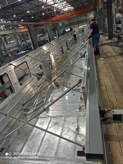 Rīgā elektrovilciena vagoni tiek uzmontēti uz platsliežu ratiņiem, tiem uz jumta tiek uzstādītas elektroiekārtas un veikti visi nepieciešamie darbi, lai varētu veikt elektrovilciena iestatīšanas darbus un izmēģinājuma braucienus.