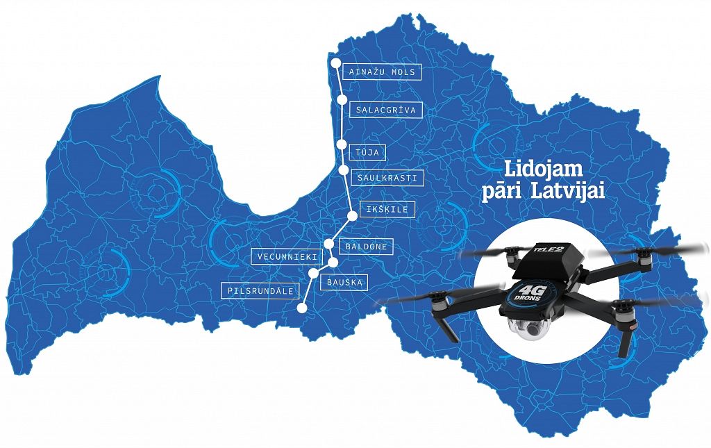 Ekspedīciju «Tele2» komanda sāka Pilsrundālē un divu dienu laikā nokļuva līdz Ainažu molam, vadot lidaparātu ar 4G tīkla atbalstu. Visa maršruta garumā drons tika darbināts, pateicoties «Tele2» inženieru radītajam 4G vadības blokam, kas tika uzstādīts uz drona un pieslēgts tā vadības sistēmai. Izmantojot šādu vadības bloku, dronu var vadīt no jebkuras viedierīces, instalējot tajā speciālu lietotni.