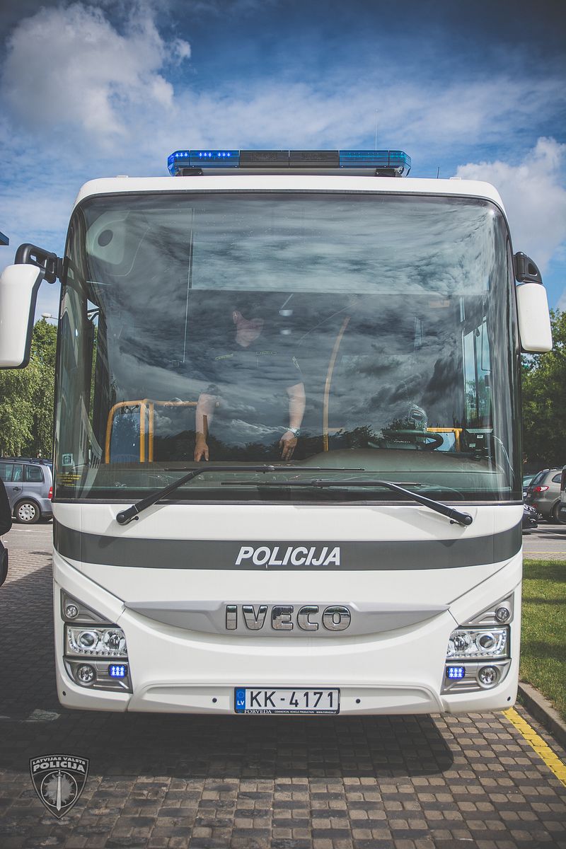 Valsts policija piektdien, 8.jūlijā prezentēja jauno konvoja autobusu Iveco Crossway Line, kurš nodots Rīgas reģiona pārvaldes Konvoja bataljona rīcībā, lai pārvadātu apcietinātās personas starppilsētu robežās. Jaunais transportlīdzeklis būtiski uzlabots, lai nodrošinātu pārvadājamo personu drošību un komfortu. Šis ir vienīgais tāda veida autobuss Baltijā, informē Valsts policijā.