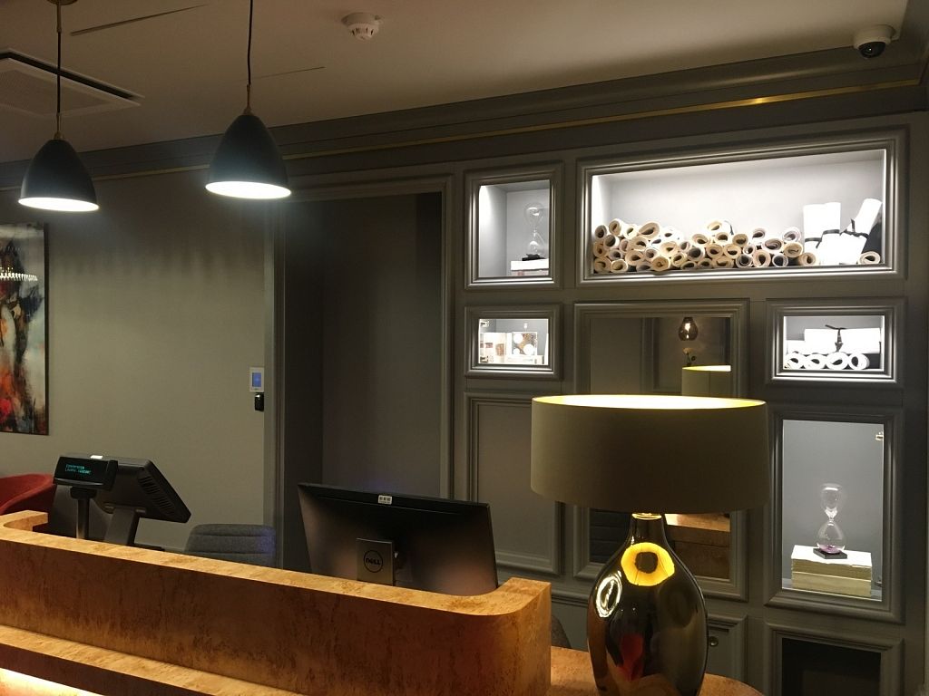 Pati ēka ir arhitektūras piemineklis, tādēļ tajā ir saglabātas vairākas autentiskas lietas, piemēram, koka kāpnes piecu stāvu garumā un vēsturiskās podiņu krāsnis. Viesnīcas dizainu ir veidojusi zviedru kompānija Stylt Trampoli.