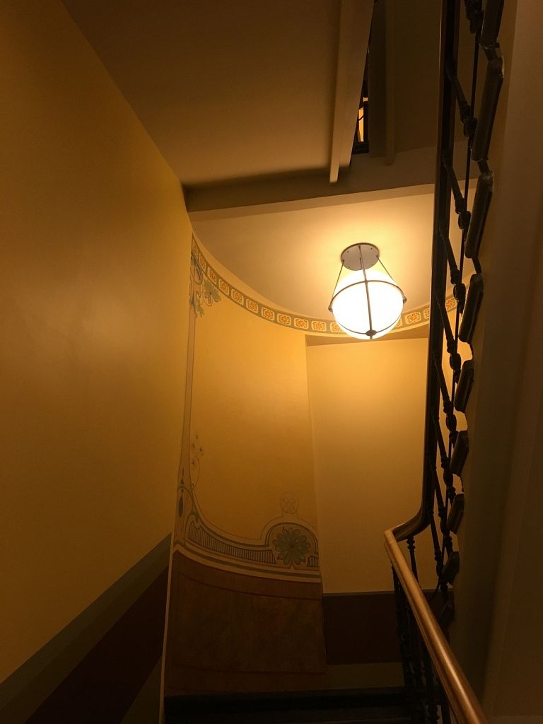 #Ēka ir arhitektūras piemineklis, tādēļ tajā ir saglabātas vairākas autentiskas lietas, piemēram, koka kāpnes piecu stāvu garumā un vēsturiskās podiņu krāsnis.