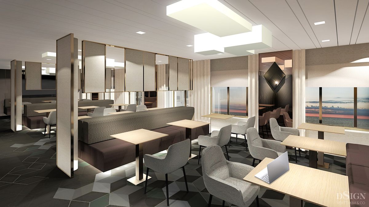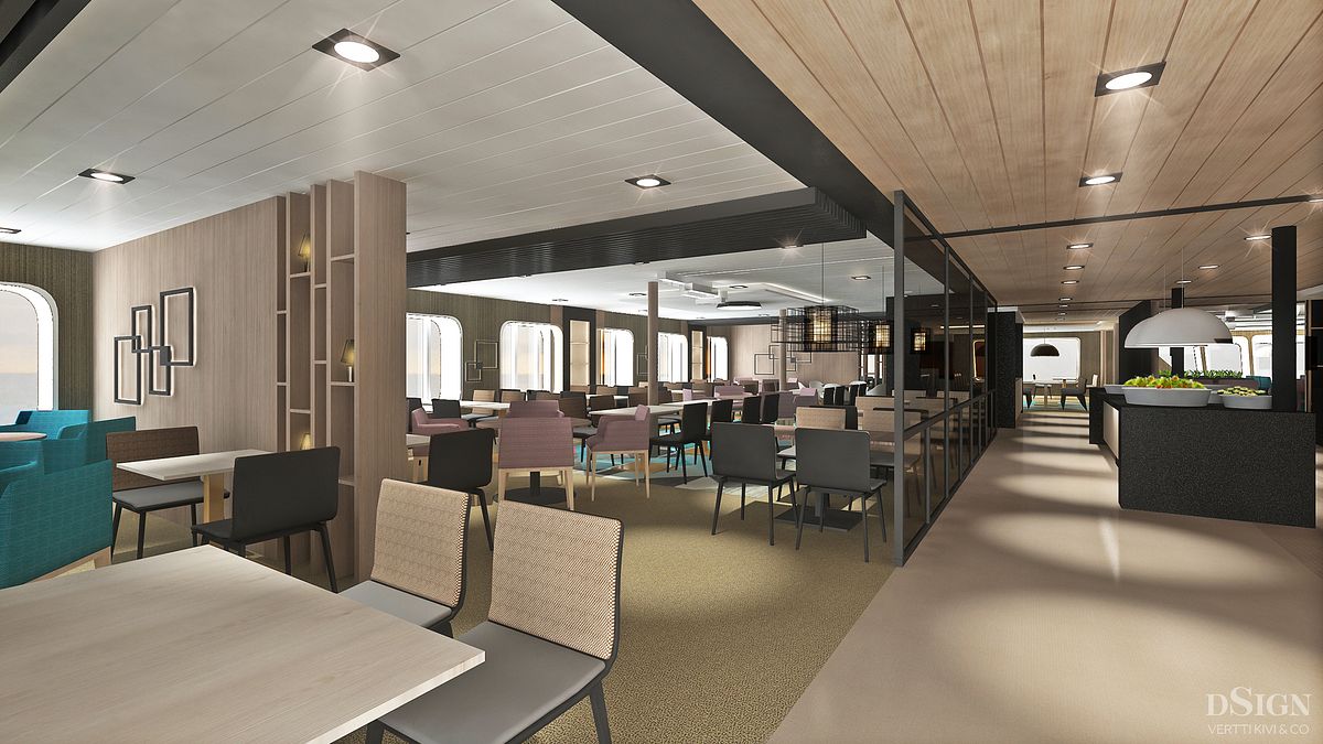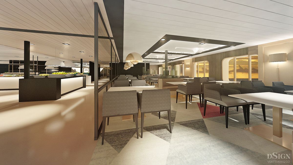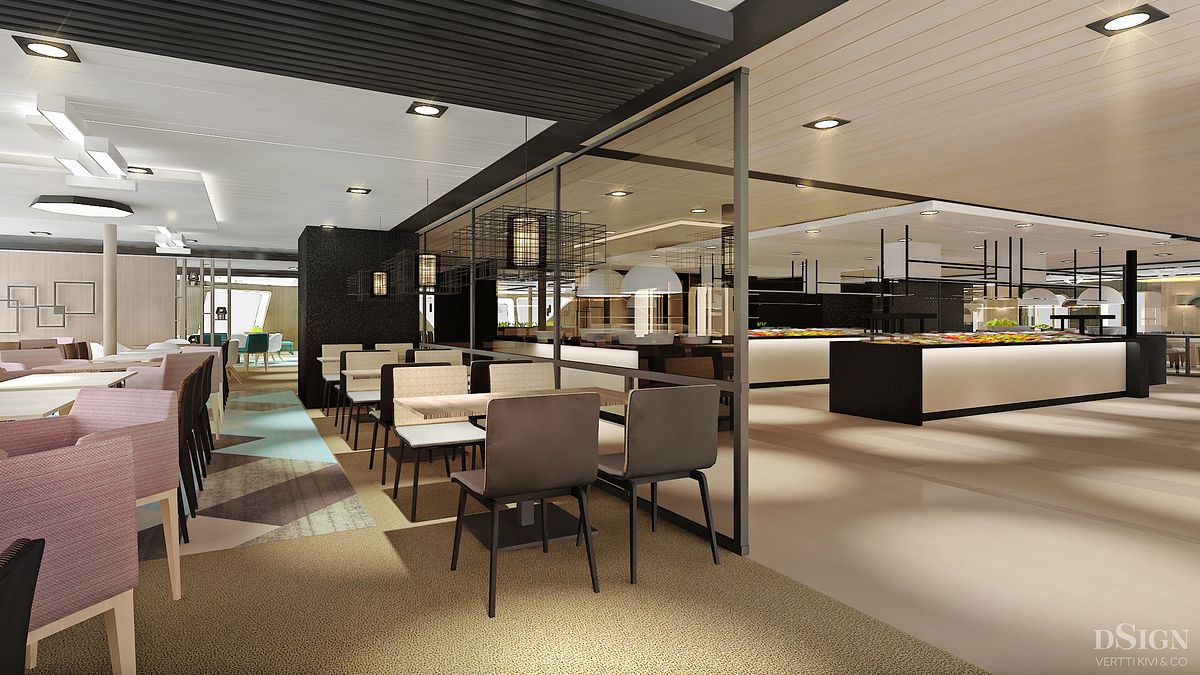Klientu vēlme bija, lai uz prāmja ir mazāk kajīšu un vairāk sēdvietu. No dizaina aspekta tas nozīmē vairāk telpas restorāniem. Uz kuģa šobrīd ir 2 800 sēdvietas un septiņi dažādi restorāni un kafejnīcas.