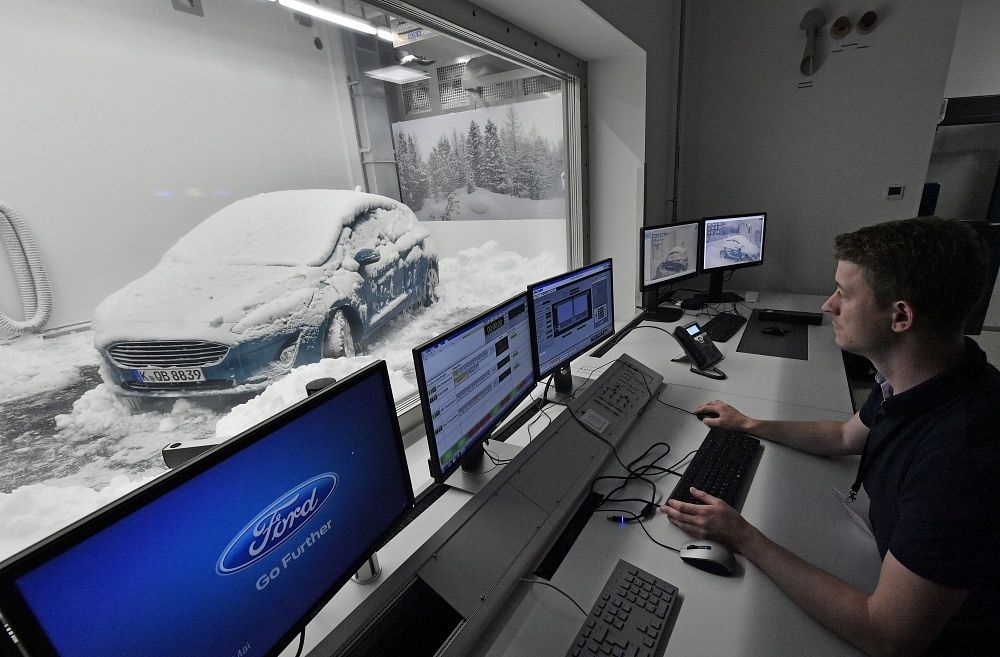 Jaunajā Ford testēšanas centrā Ķelnē zem viena jumta apvienojas visi pasaules laikapstākļi, ļaujot inženieriem pārbaudīt jaunākās automašīnas ekstrēmos apstākļos. Ford centra platība ir gandrīz 1000 kvadrātmetri.