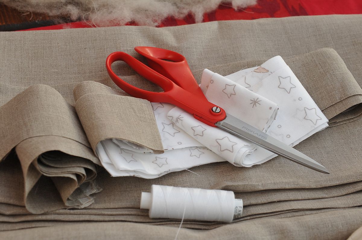 Lai tiktu pie segas, vispirms ir jāpiegriež audums, jāizmēra tās kvadrātiņi, lai var precīzi tos sadiegt un sašūt.