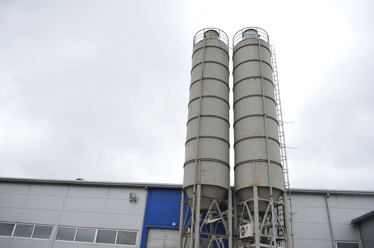 Cements no silosa uz betona maisītāju tiek nogādāts ar gliemežtransportiera palīdzību.