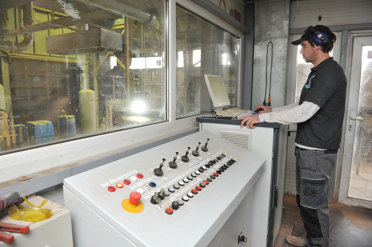 Atsevišķā telpā atrodas datori un monitori, kurus vēro uzņēmuma darbinieki, sekojot līdzi ražošanas procesam.