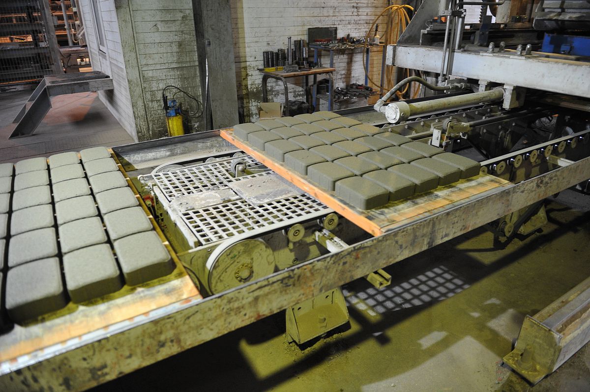 Vibroprese darbojas automatizēti. Precīzi dozējot, sagatavotais maisījums tiek iepildīts formās, kur cikliskas vibropresēšanas rezultātā uz speciālām paletēm veidojas gatavā produkcija,