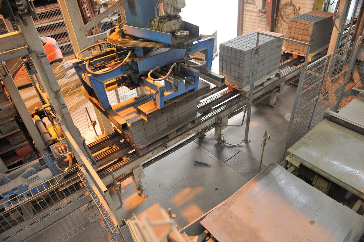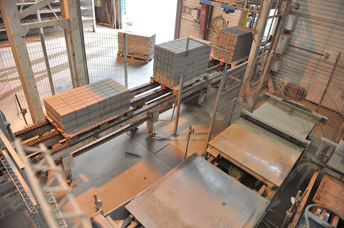 Kad iegūta forma, bruģis uz speciālām paletēm virzās un plauktiņiem, kur tiek sarindotas paletes.