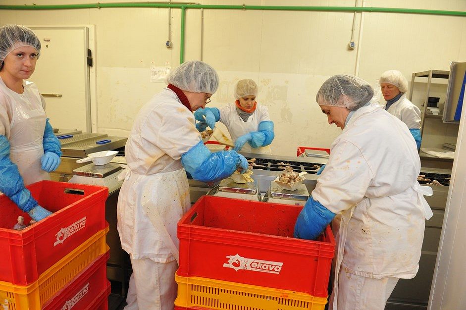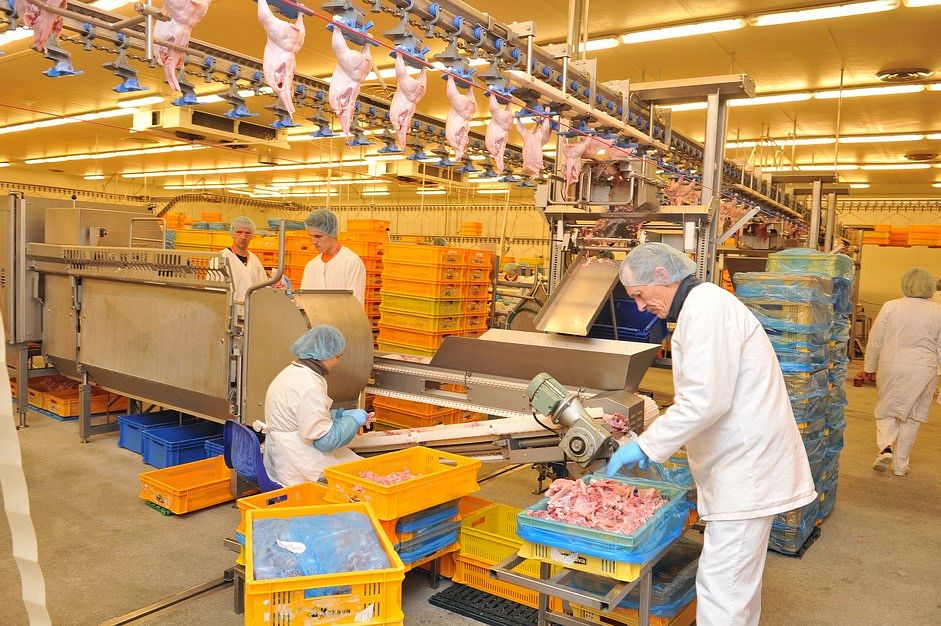 Tad liemeņi virzās pa konveijeru, kur katrā posmā tiek atdalītas konkrētas daļas – piemēram, vienā sekcijā krūtiņas, citā – stilbiņi.