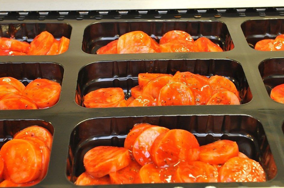 Kad gaļa ir samarinēta, to fasē ar iekārtas palīdzību, kas automātiski aizlīmē iepakojumu ar plēvi un izsūc gaisu un iepūš gāzi – tā saucamo aizsargatmosfēru, lai produkts nebojātos, norāda N. Kārkliņš.