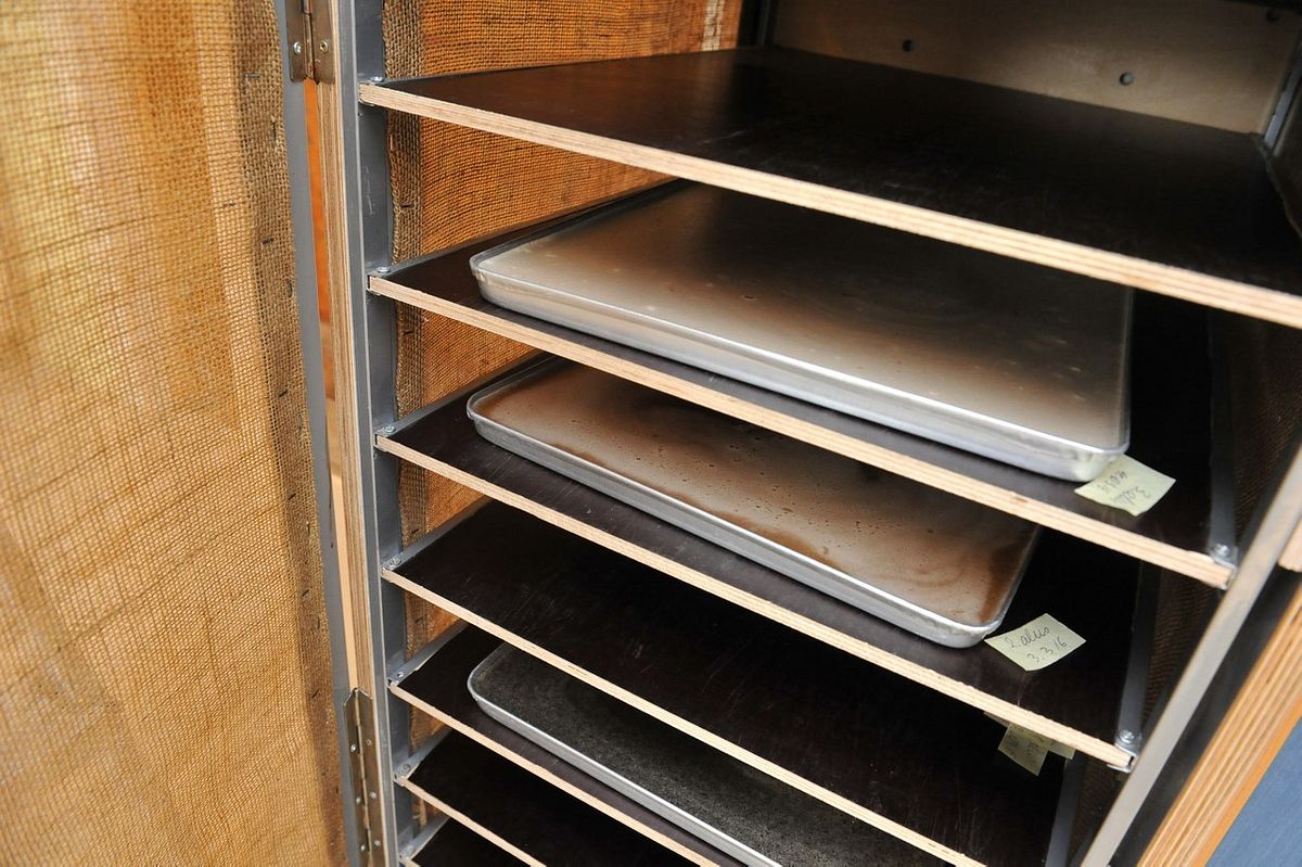 Īpaši marmelāžu veidnēm pagatavots skapītis, kur tās uzglabā, kamēr tās sacietē.