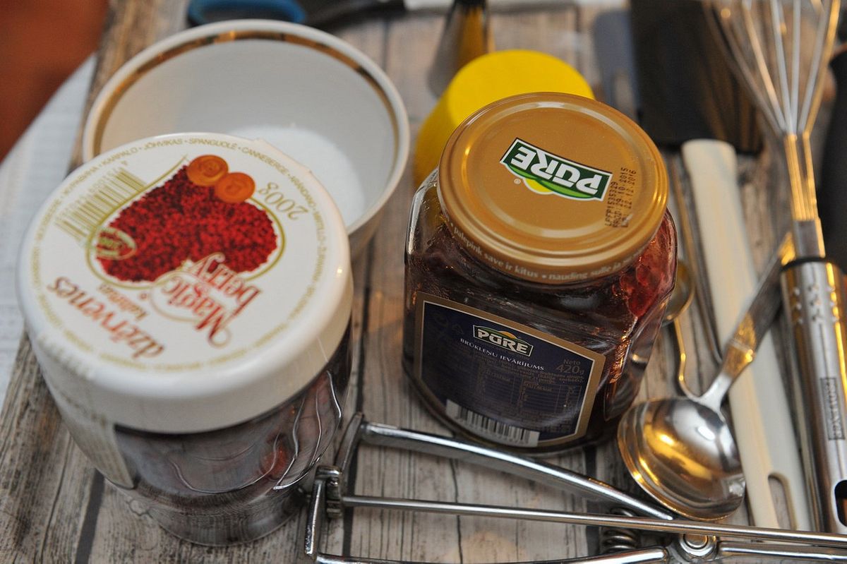 Vidū iepilda brūkleņu ievārījumu.
