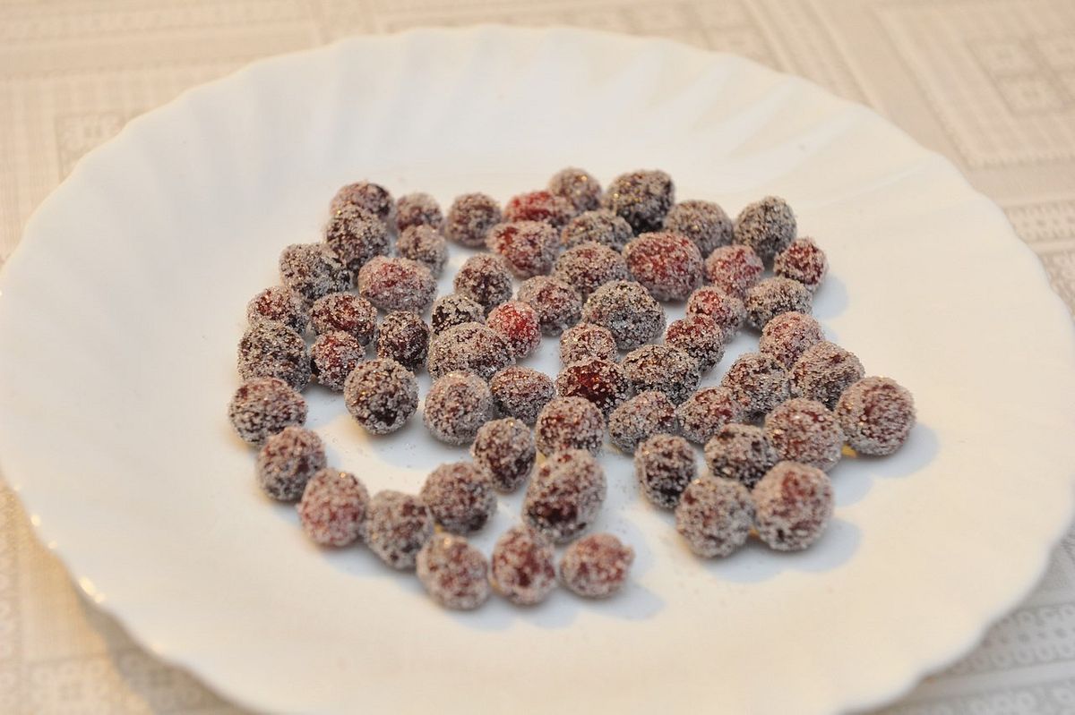 Tad sagatavo ogas. Dzērvenes apviļā cukurā.