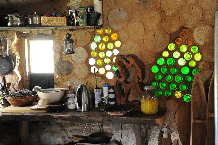 Lai cilvēki gribētu atbraukt vēreiz, top arvien jauni apskates objekti. Tie nav tikai vienkoči. Rihardam tīk radīt ko tādu, kas vismaz Latvijā vēl nav bijis. Viens no neparastākajiem objektiem ir pirms pāris gadiem tapusī smilšu maisu māja - pilnīgs eko variants. Ar pudeļu stiklu lodziņiem, māla kleķa un malkas mūrētu priekšnamu, kupli sazaļojušu velēnu jumtu. Arī tās interjera priekšmeti - sākot ar vienkoču klubkrēsliem līdz oriģināliem plauktiem un apgaismes ķermeņiem saimnieka darinājums. Skurstenis kūp, iekšā omulīgi un silti, logā dators, kurā var apskatīt visu namiņa tapšanas gaitu. Rihards arī labprāt katru interesentu konsultē par šādas būves veidošanu. Kopumā visam namiņam, apkures aprīkojumu ieskaitot, iztērēts kāds tūkstotis latu. Savu un draugu ieguldīto darbu, protams, Rihards neierēķina, bet noņemšanās bijusi pamatīga. Tagad šī ēka kalpo par darbinieku štābiņu.