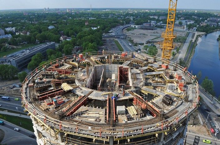 Augstceltņu projekta pirmā posma darbus - pazemes daļas un nulles cikla izbūvi - veica Austrijas kompānija Strabag, bet kā projekta attīstītājs darbojās SIA Z Towers. Gan šis uzņēmums, gan Towers Construction Management pieder ar starptautisko kompāniju SPI Group saistītiem uzņēmumiem.