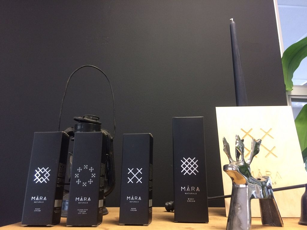 Ilgs laiks pagājis līdz uzņēmuma īpašnieki nonākuši līdz zīmola nosaukumam. «Mēs vēlējāmies izmantot latviešu motīvu, bet tā, lai tas izietu pasaulē un būtu labi uztverams. Tā mēs nonācām pie vārda Māra. Māras krustu iekļāvām mūsu zīmola stāstā kā logo, jo tas simbolizē pilnu un noslēdzošu gadu, kas ietver sevī četrus gadalaikus. Mums ir četras līnijas un katra līnija ir paredzēta katram gadalaikam un ādas tipam. Katra oga vai zieds nāk no konkrēta gadalaika,» paskaidro A. Jermolovičs. Uz visiem produktu iepakojumiem attēlots Māras krusts vai Māras krusta turpinājums.