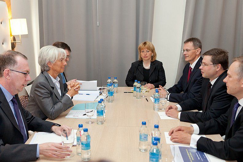 Ministru prezidents Valdis Dombrovskis tiekas ar Starptautiskā Valūtas fonda izpilddirektori Kristīni Lagardu.