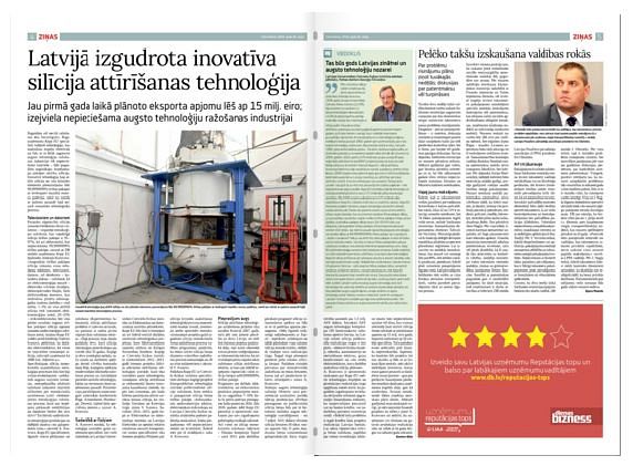 Visu rakstu Latvijā izgudrota inovatīva silīcija attīrīšanas tehnoloģija lasiet 26. maija laikrakstā Dienas Bizness.
