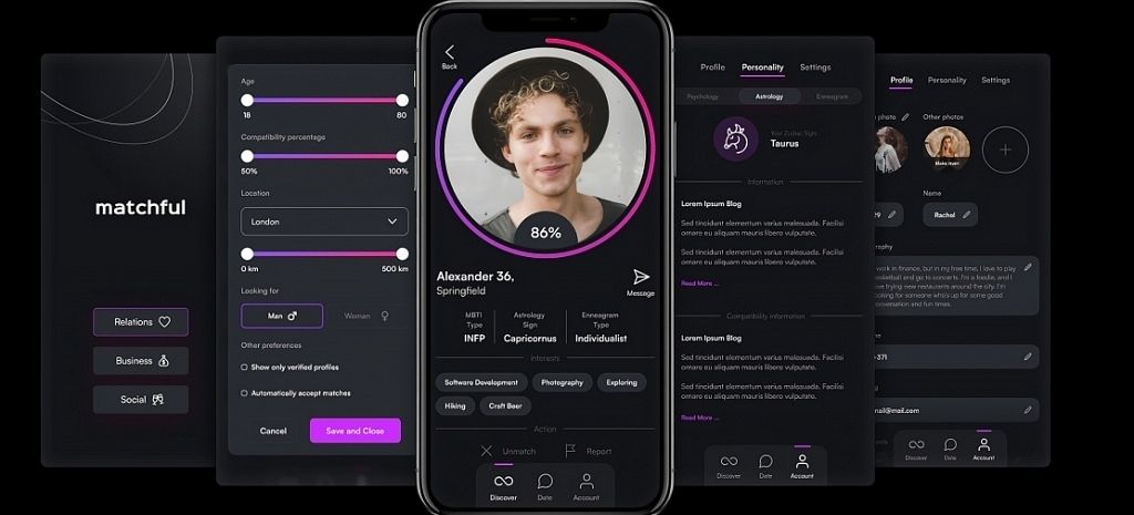 “Matchful” jau tagad tirgū ir mobilā lietotne, kas piedāvā pakalpojumus trīs līmeņos - pašizziņas funkciju, saderības novērtējumu un iepazīšanās platformu. Balstoties uz precīziem psiholoģijas testiem un digitalizētu astroloģiju, lietotne nodrošina lietotāju izvērtējumu un nosaka saderības līmeni darba, draudzības vai romantisku attiecību gadījumā, kā arī identificē augstas saderības līmeni starp lietotājiem. Tuvākajos mēnešos aplikācijā tiks ieviesti jauni funkcionalitātes risinājumi – pārdošanas un personāla atlases rīki.