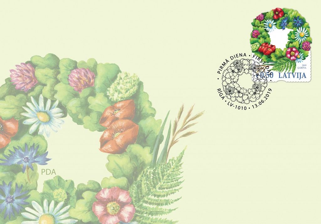 Jaunā pastmarka izceļas ar savu neregulāro formu – tā veidota kā vainags, kas vīts no dažādiem Latvijas pļavās sastopamiem ziediem. Vainagi ir viens raksturīgākajiem un būtiskākajiem Vasaras saulgriežu svētku elementiem, kurus tradicionāli liek galvā Līgo vakarā.